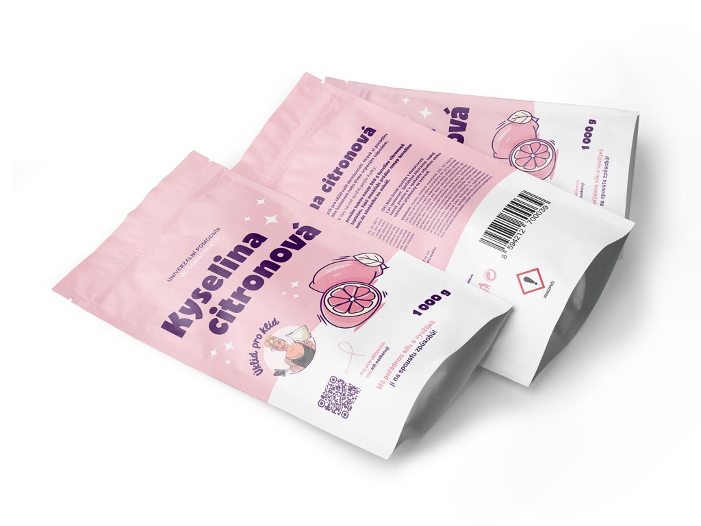 Balení 1 kg kyseliny citronové má praktický opakovaně uzavíratelný sáček, ať se ti doma nesype po poličce. Sáček je vyrobený ze 100% recyklovatelného plastu.