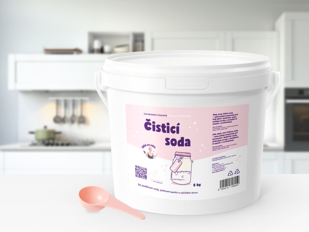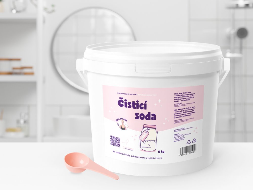 Ahoj, jsem čisticí soda. Univerzální pomocník pro tvůj úklid. Změkčím tvrdou vodu, pohltím pachy a pomůžu ti zatočit s nečistotami i mastnotou.