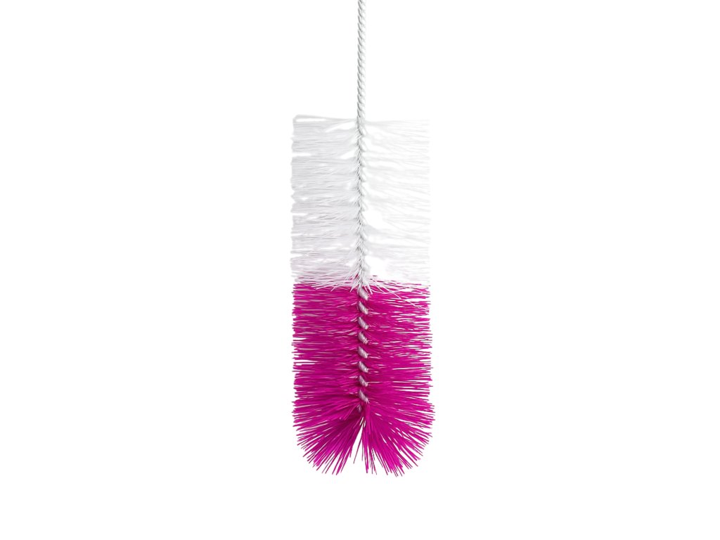 Ahoj, jsem kartáč na lahve a dostanu se i tam, kam ostatní pomocníci ani nedohlédnou. Díky dlouhé rukojeti a pevným štětinám důkladně vyčistím nejel lahve na vodu, ale i karafy, vázy, termosky nebo třeba kojenecké lahvičky.