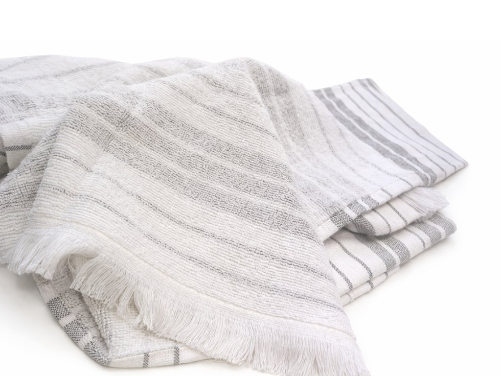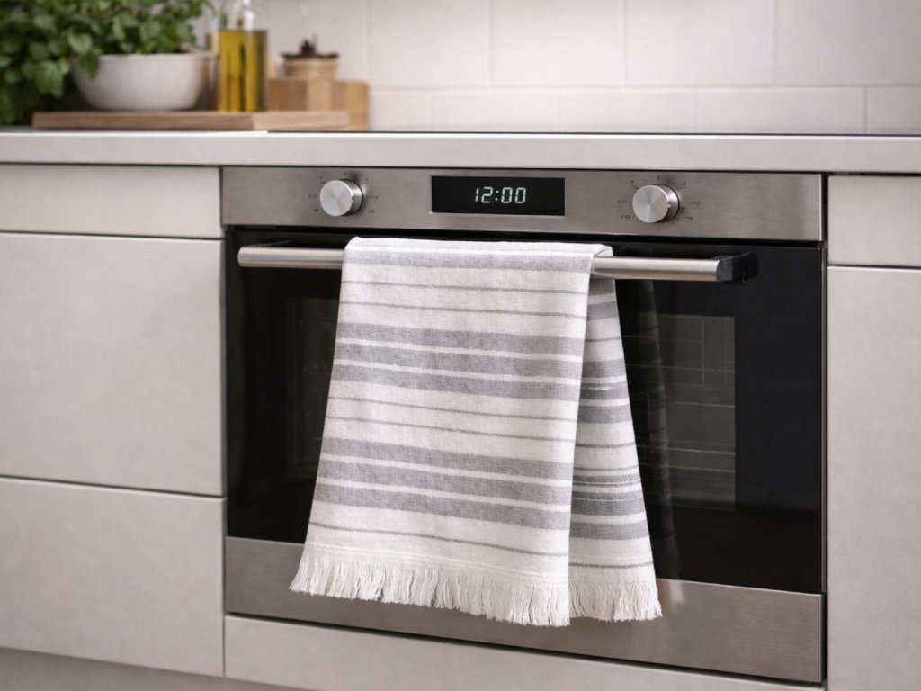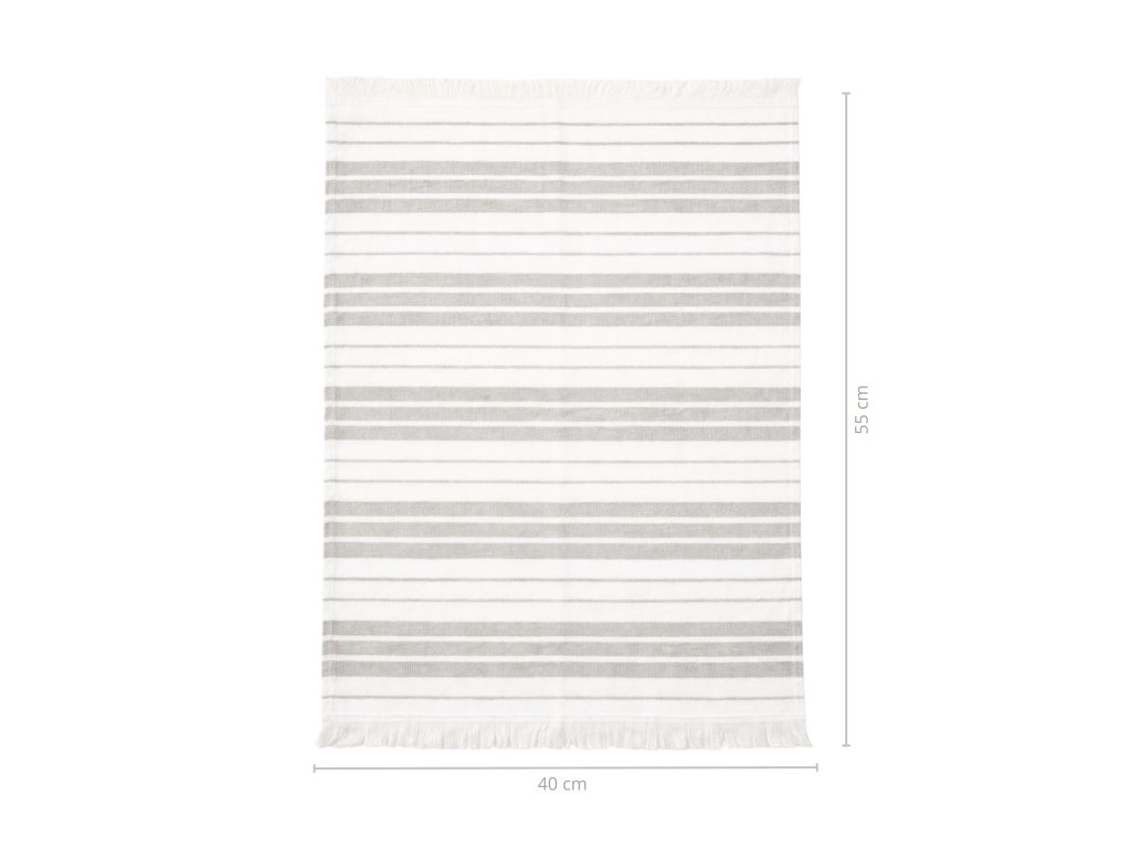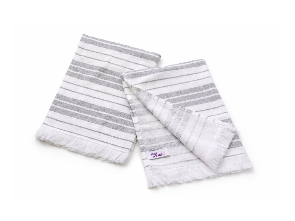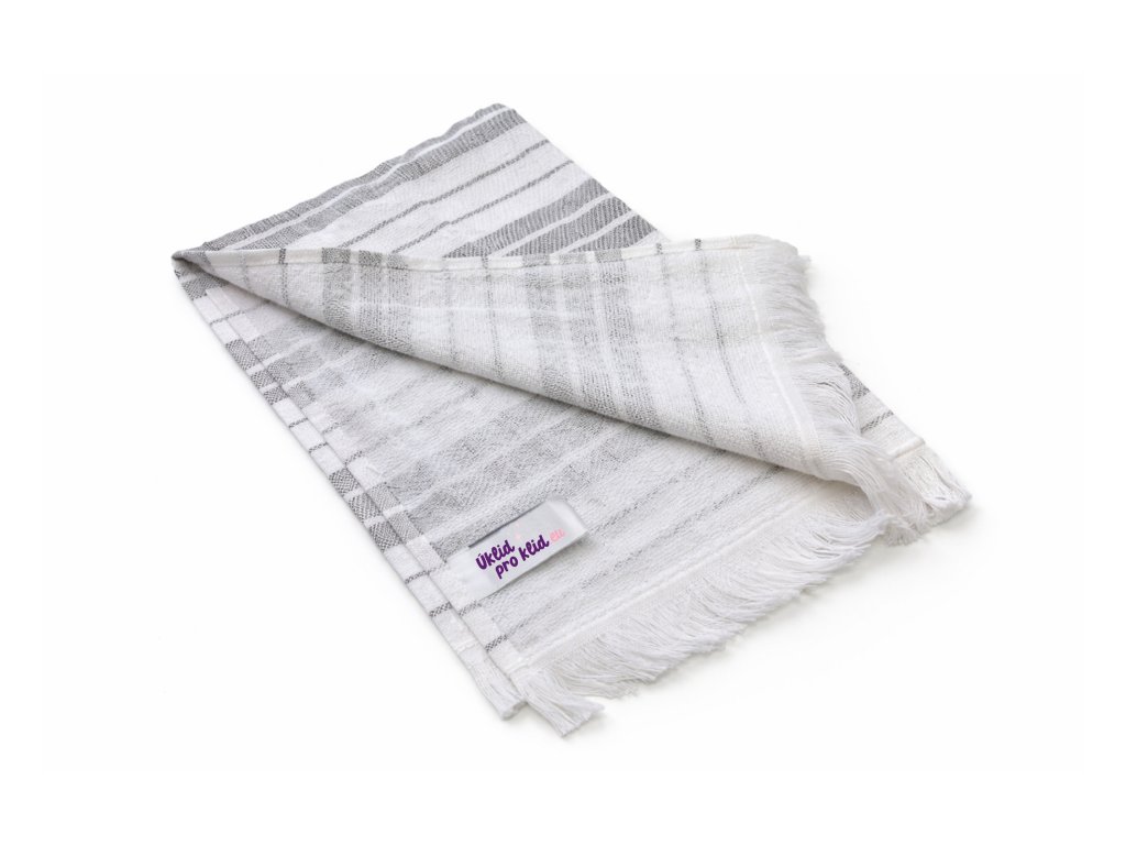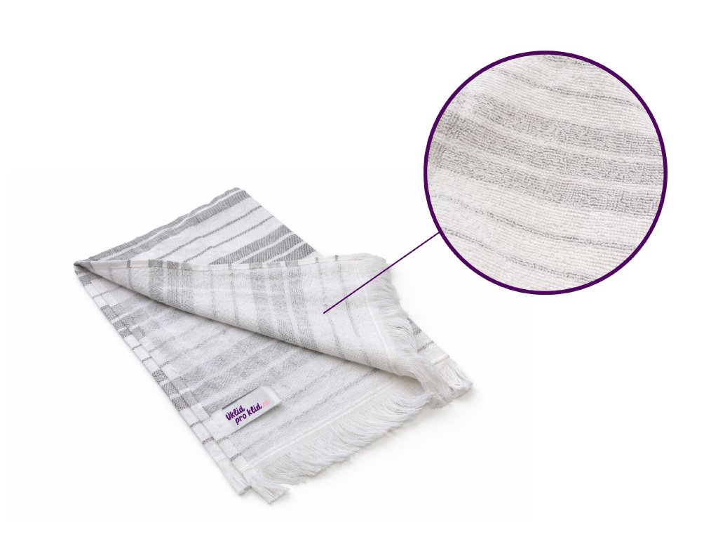 Máme praktický rozměr 55 × 40 cm, takže se s námi dobře pracuje, a třásně na obou stranách nám dodávají šmrnc. V sadě jsme rovnou dvě, protože jedna utěrka prostě nikdy nestačí.