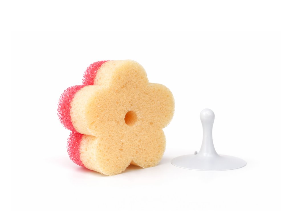 Ahoj, jsem houbička ve tvaru kytičky. Vypadám roztomile, ale zvládnu víc, než si myslíš. Můžeš mě použít na nádobí, koupelnu, lednici, troubu a dokonce i koberce.