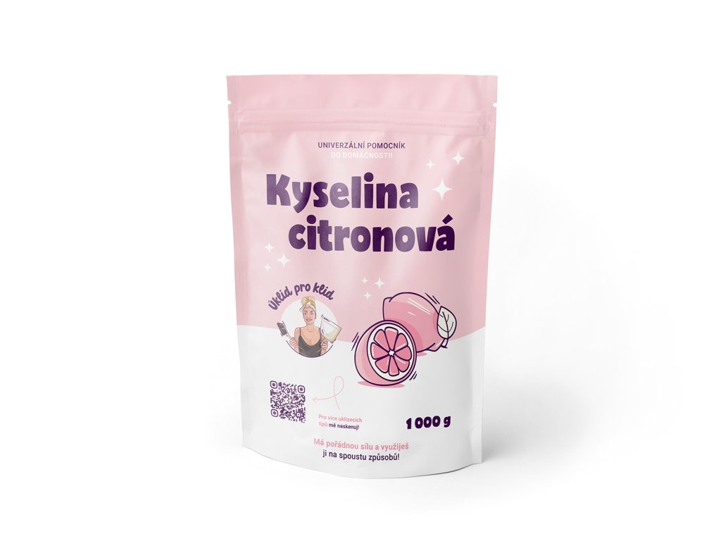 Balení 1 kg kyseliny citronové má praktický opakovaně uzavíratelný sáček, ať se ti doma nesype po poličce. Sáček je vyrobený ze 100% recyklovatelného plastu.