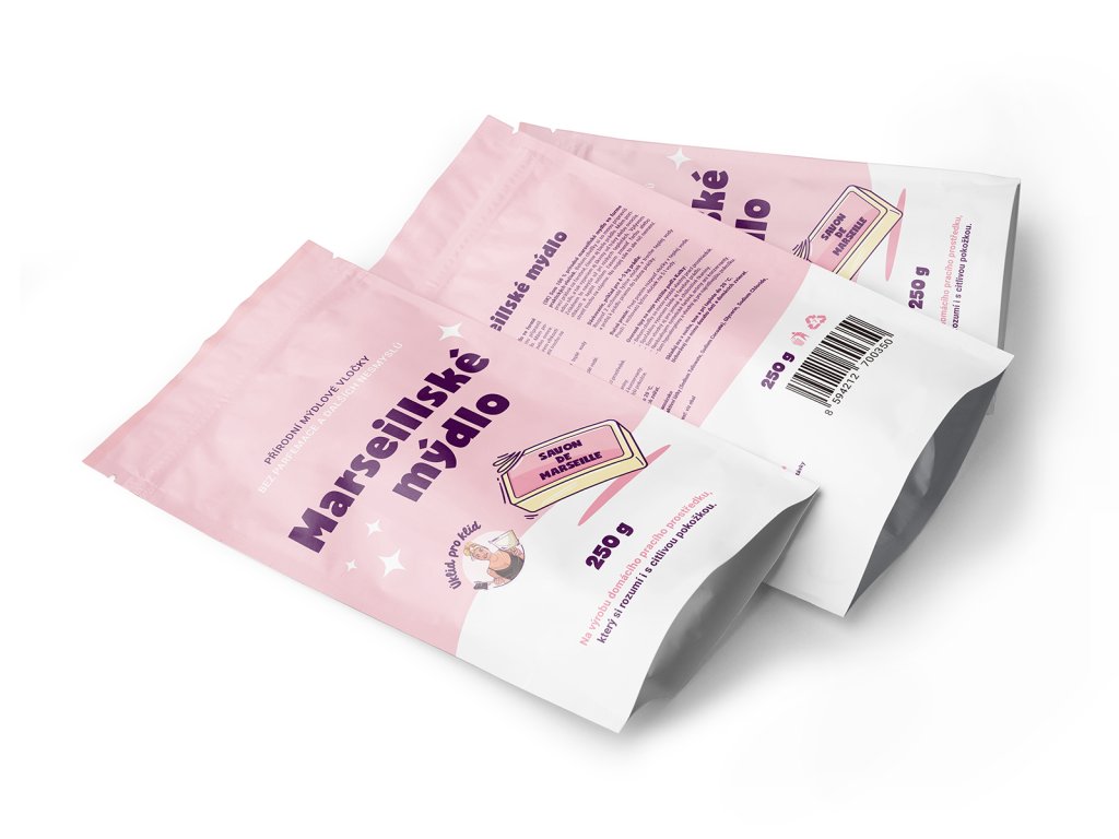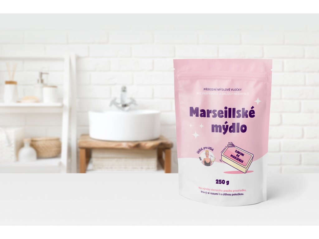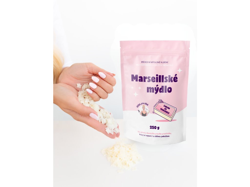 Jsem 100% marseillské mýdlo ve formě praktických vloček. Během chvilky se mnou připravíš prací prášek na barevné, černé i bílé prádlo. Mám pořádnou sílu, a tak vyperu i skvrny od trávy nebo ovoce. Zvládnu to navíc už při nízkých teplotách.