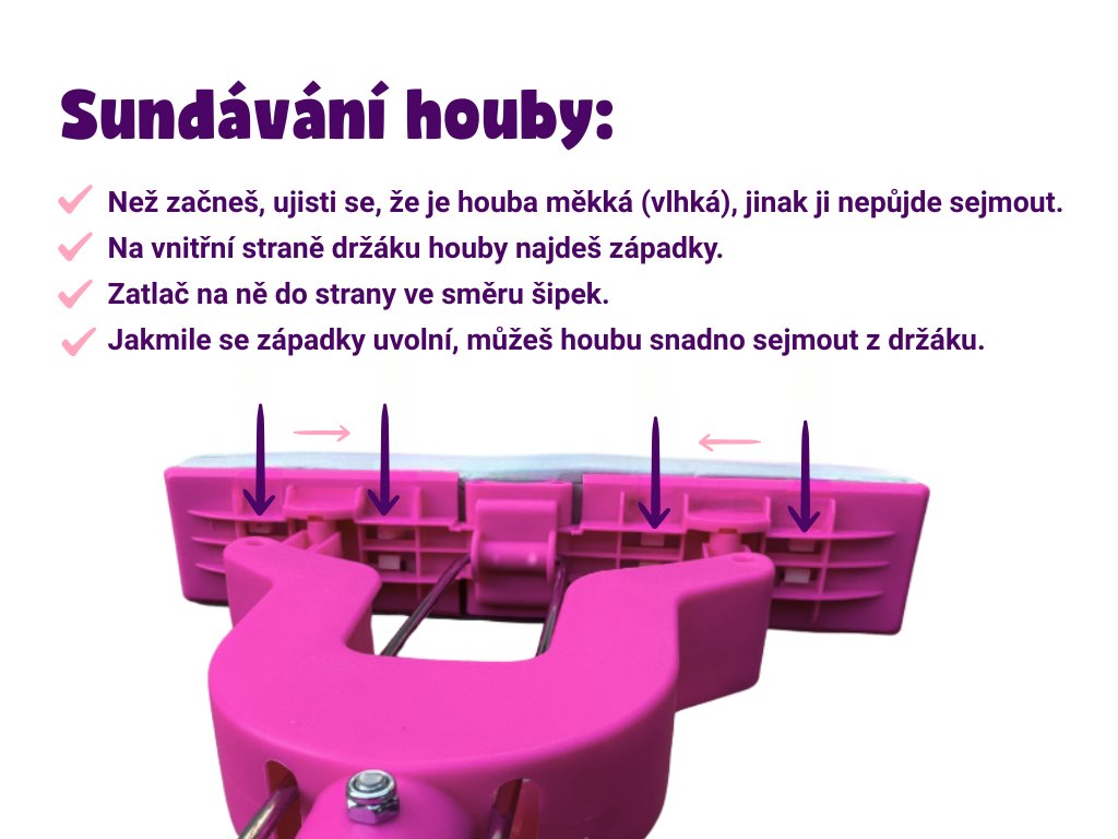 - Mám šikovný ždímací mechanismus, takže ruce zůstanou suché