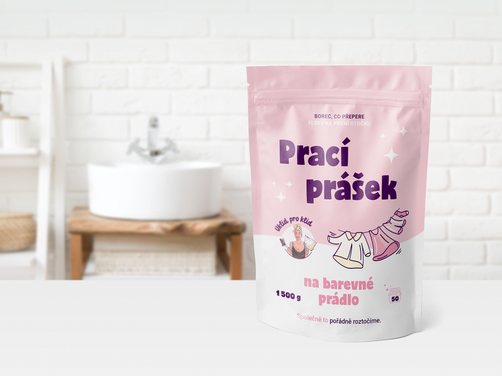 Ahoj, jsem prací prášek na barevné prádlo. Specialista na každodenní praní, který si poradí s fleky a k barvám se chová s respektem.