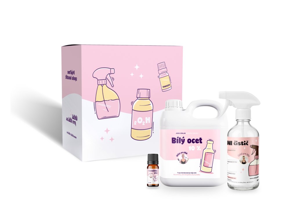 Vše je zabaleno v pěkné dárkové krabici Úklid pro klid. Můžeš tak celou sadu také darovat své kamarádce, dceři nebo mamince.