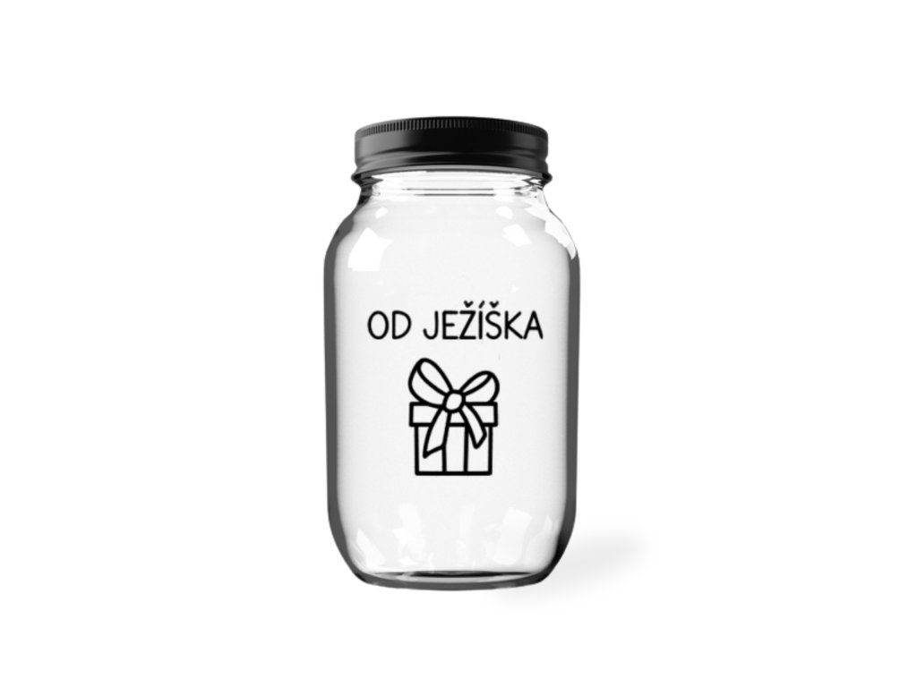 Ať už plánuješ někomu věnovat malou pozornost nebo rovnou pořádný dárek, sklenice s nápisem „OD JEŽÍŠKA“ udělá radost dětem i dospělým. Je to totiž ideální obal na domácí dárky – a s těmi vykouzlíš tu pravou vánoční atmosféru.