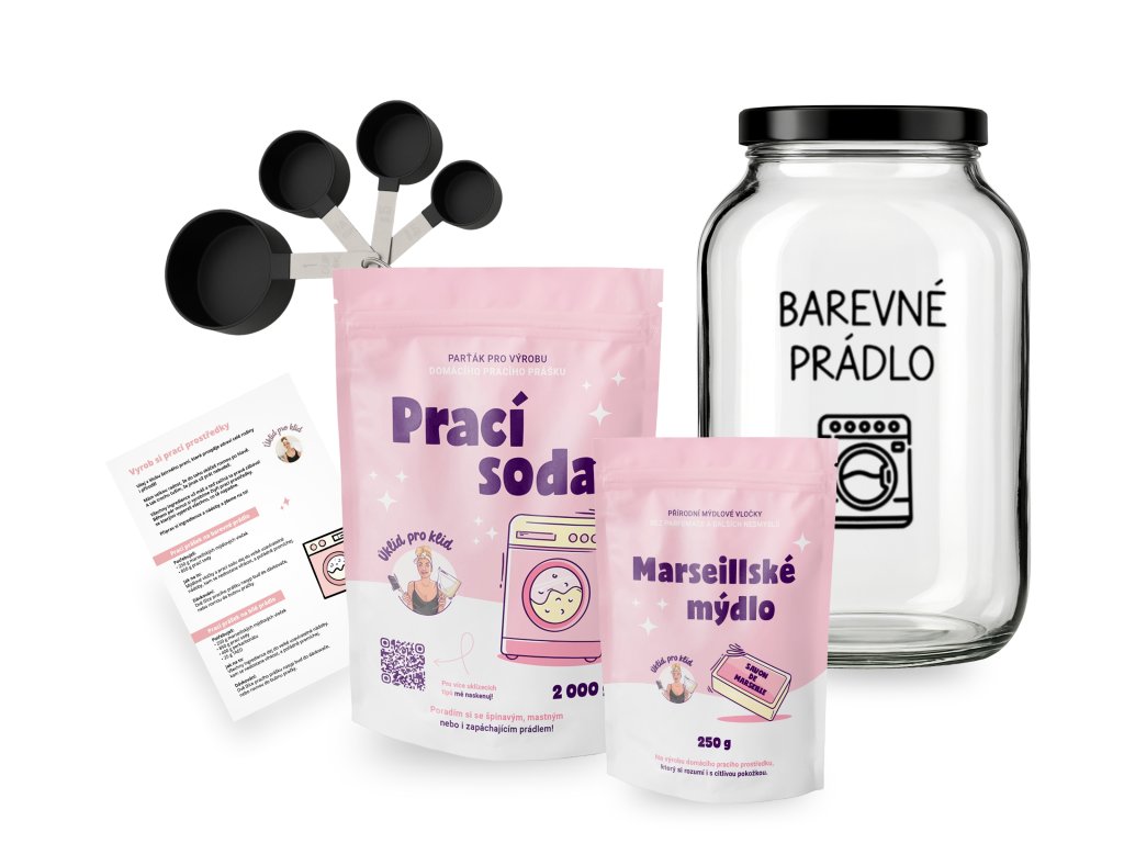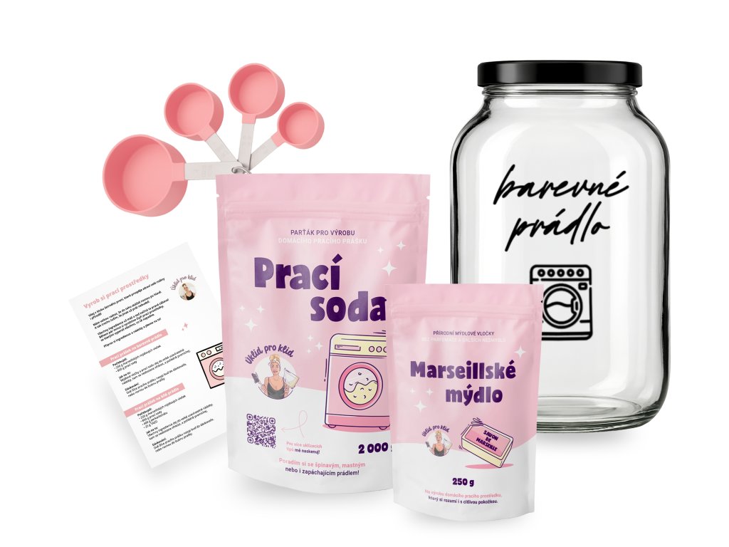 Chceš si zkusit vyrobit vlastní prací prášek, který je šetrný k vašemu zdraví i přírodě? Tak tenhle balíček je parádní start pro tvé domácí praní. Během chvilky s ním vyrobíš prací prášek na barevné a tmavé prádlo.