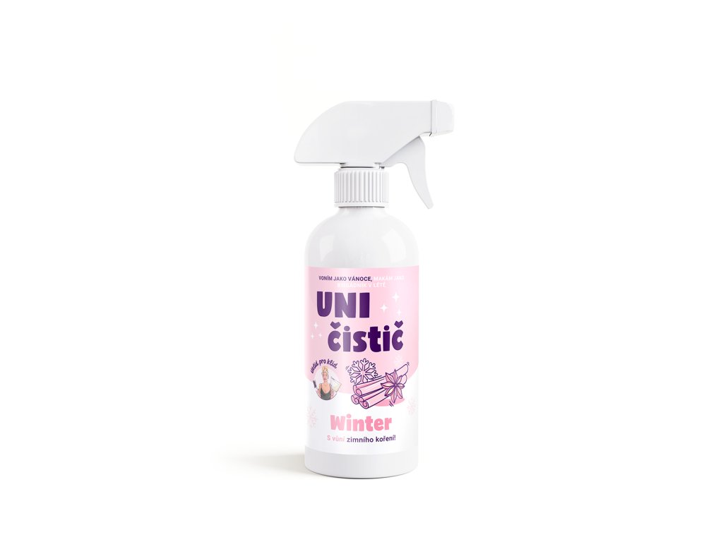 Jsem UNI čistič – tvůj nepostradatelný pomocník pro každodenní úklid. V sobě mám to nejlepší, co při úklidu potřebuješ. Bílý ocet je můj úklidový hrdina. Bez problému si poradím s vodním kamenem, mastnotou i běžnými nečistotami. Ještě ti k tomu přidám vůni, která ti zpříjemní každé stříknutí.