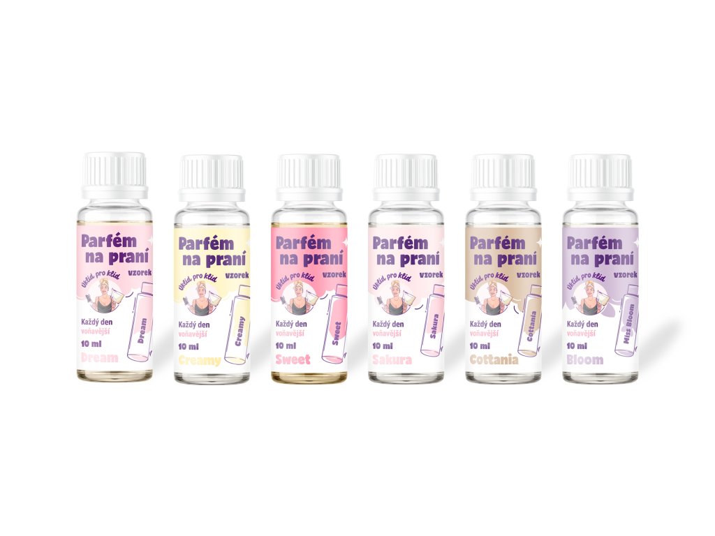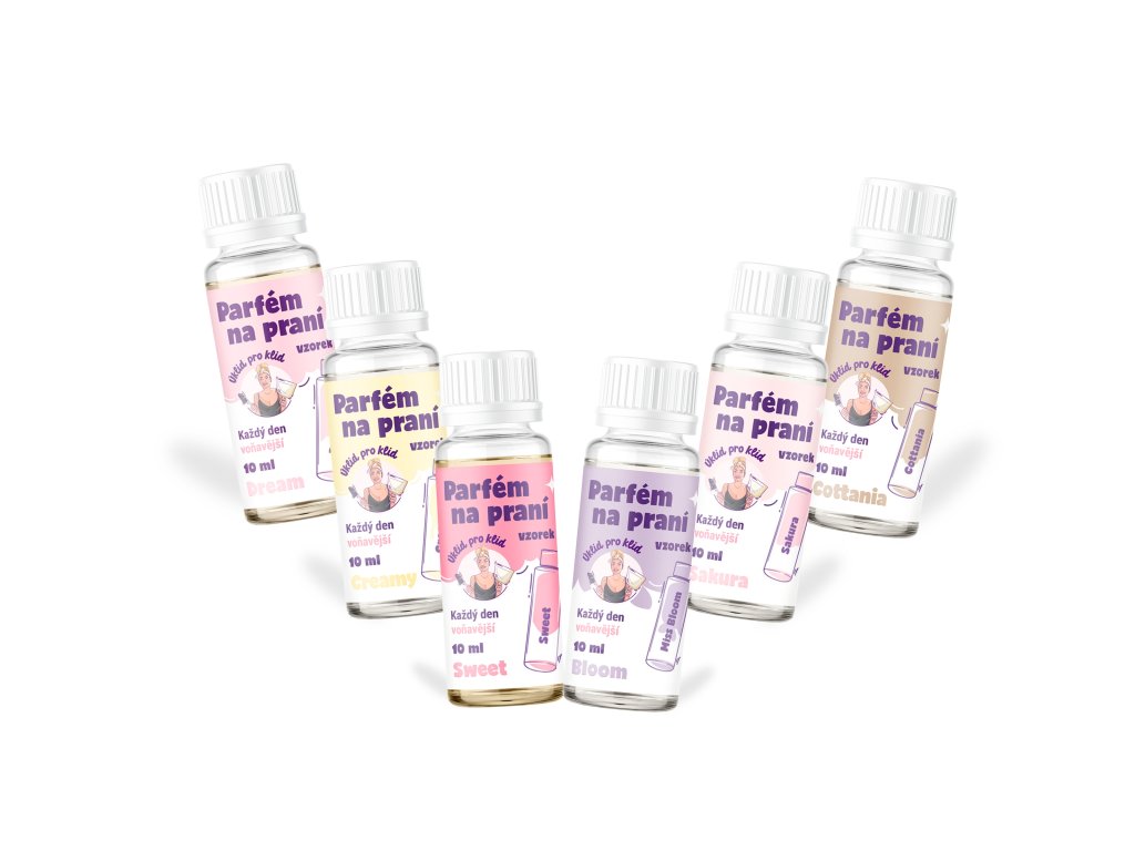 Ahoj, jsem sada vzorků parfémů na praní, se kterou si snadno vybereš vůni, která ti padne jako šitá na míru. Vyzkoušej všech 6 parfémů a najdi si toho svého favorita.